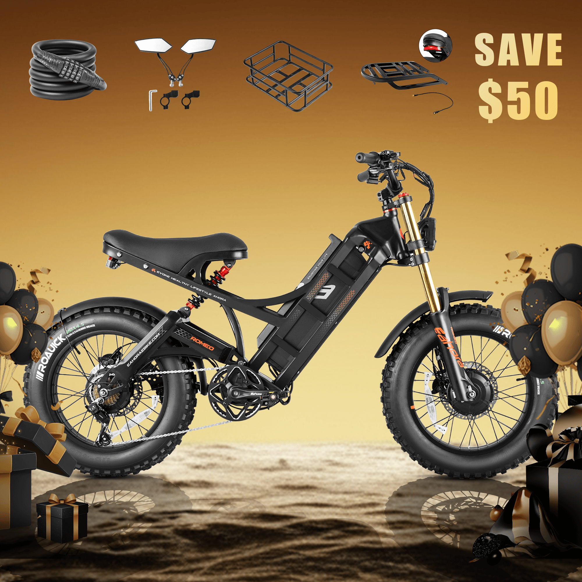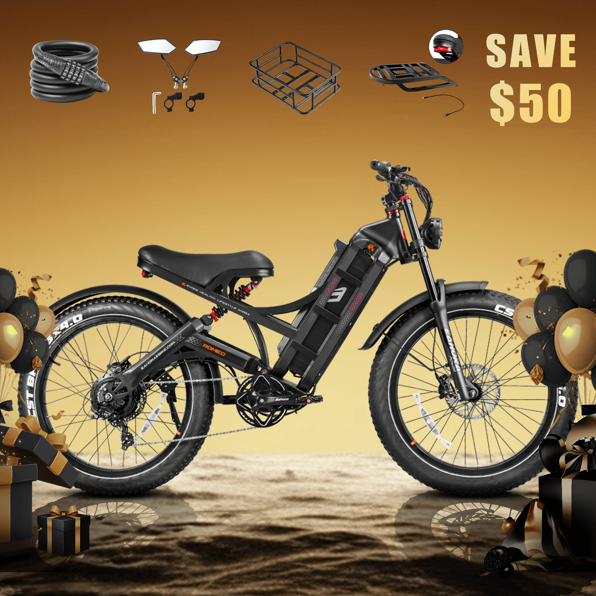 (Note: When the total amount of bike models and accessories reaches the threshold for the spend-based deduction, the discount will be automatically applied at checkout.)